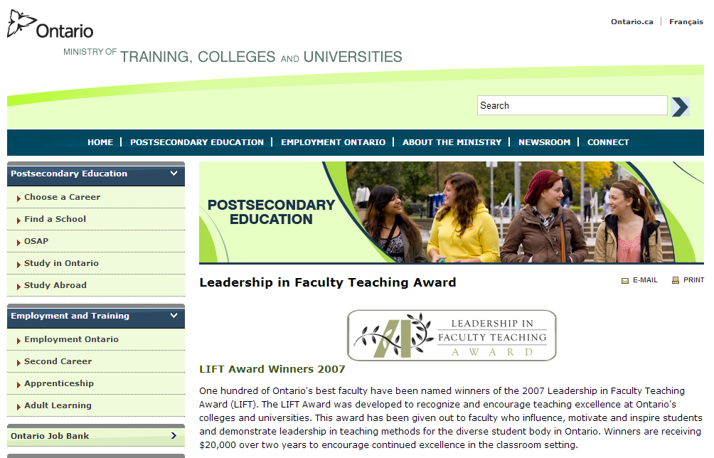 in 2007, Province of Ontario.